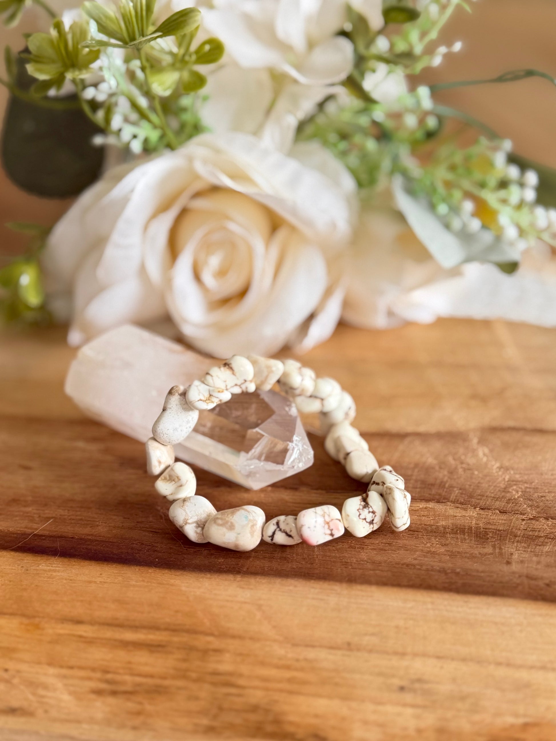 Bracelet en magnésite blanche, pierre de détente profonde,